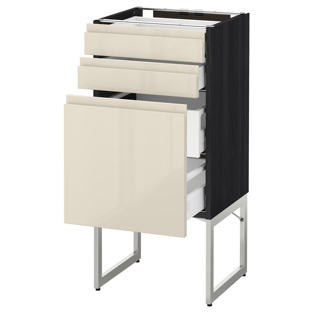 МЕТОД / МАКСИМЕРА Напольн шкаф 3фронт пнл/2низ/2ср ящ - под дерево черный, Воксторп глянцевый светло-бежевый, 40x37x60 см