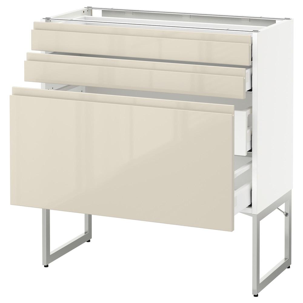 МЕТОД / МАКСИМЕРА Напольн шкаф 3фронт пнл/2низ/2ср ящ - белый, Воксторп глянцевый светло-бежевый, 80x37x60 см