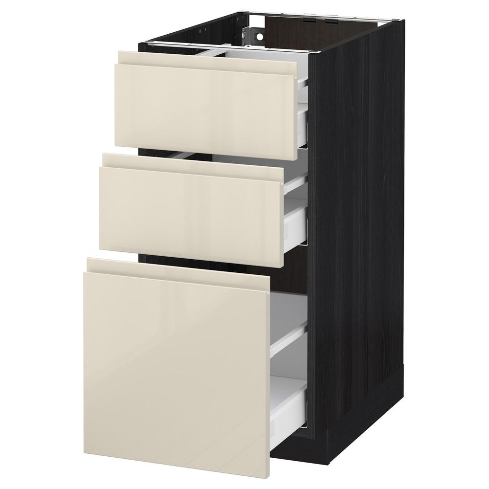 МЕТОД / МАКСИМЕРА Напольный шкаф с 3 ящиками - под дерево черный, Воксторп глянцевый светло-бежевый, 40x60 см