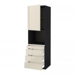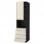 МЕТОД / МАКСИМЕРА Высокий шкаф д/комбинир СВЧ/4 ящика - под дерево черный, Воксторп глянцевый светло-бежевый, 60x60x220 см