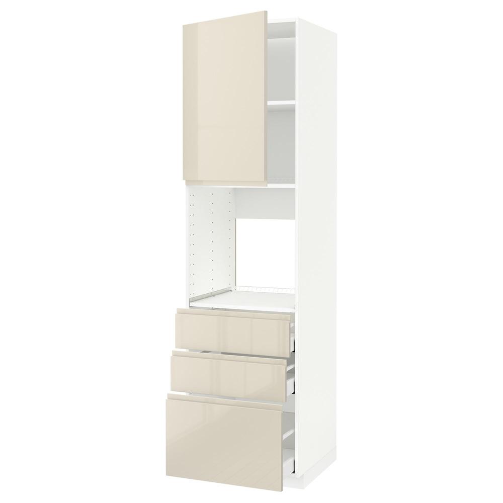 МЕТОД / МАКСИМЕРА Высокий шкаф д/духовки/дверь/3ящика - белый, Воксторп глянцевый светло-бежевый, 60x60x220 см