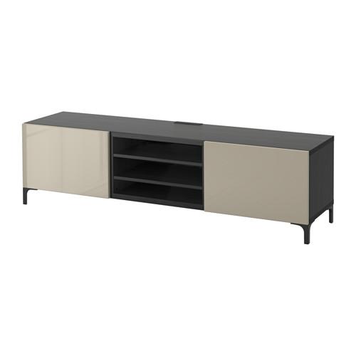 БЕСТО Тумба д/ТВ с ящиками - черно-коричневый/Сельсвикен глянцевый/бежевый, направляющие ящика, плавно закр