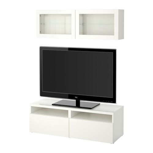 БЕСТО Шкаф для ТВ, комбин/стеклян дверцы - Лаппвикен/Синдвик белый прозрачное стекло, направляющие ящика, плавно закр