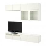 БЕСТО Шкаф для ТВ, комбин/стеклян дверцы - Лаппвикен/Синдвик белый прозрачное стекло, направляющие ящика,нажимные