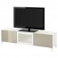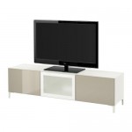 БЕСТО Тумба под ТВ с ящиками и дверцей - белый/Сельсвикен глянцевый/бежевый матовое стекло, направляющие ящика,нажимные