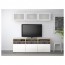 БЕСТО Шкаф для ТВ, комбин/стеклян дверцы - под беленый дуб/Сельсвикен глянцевый/белый матовое стекло, направляющие ящика,нажимные