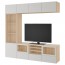 БЕСТО Шкаф для ТВ, комбин/стеклян дверцы - под беленый дуб/Лаппвикен светло-серый прозрачное стекло, направляющие ящика, плавно закр