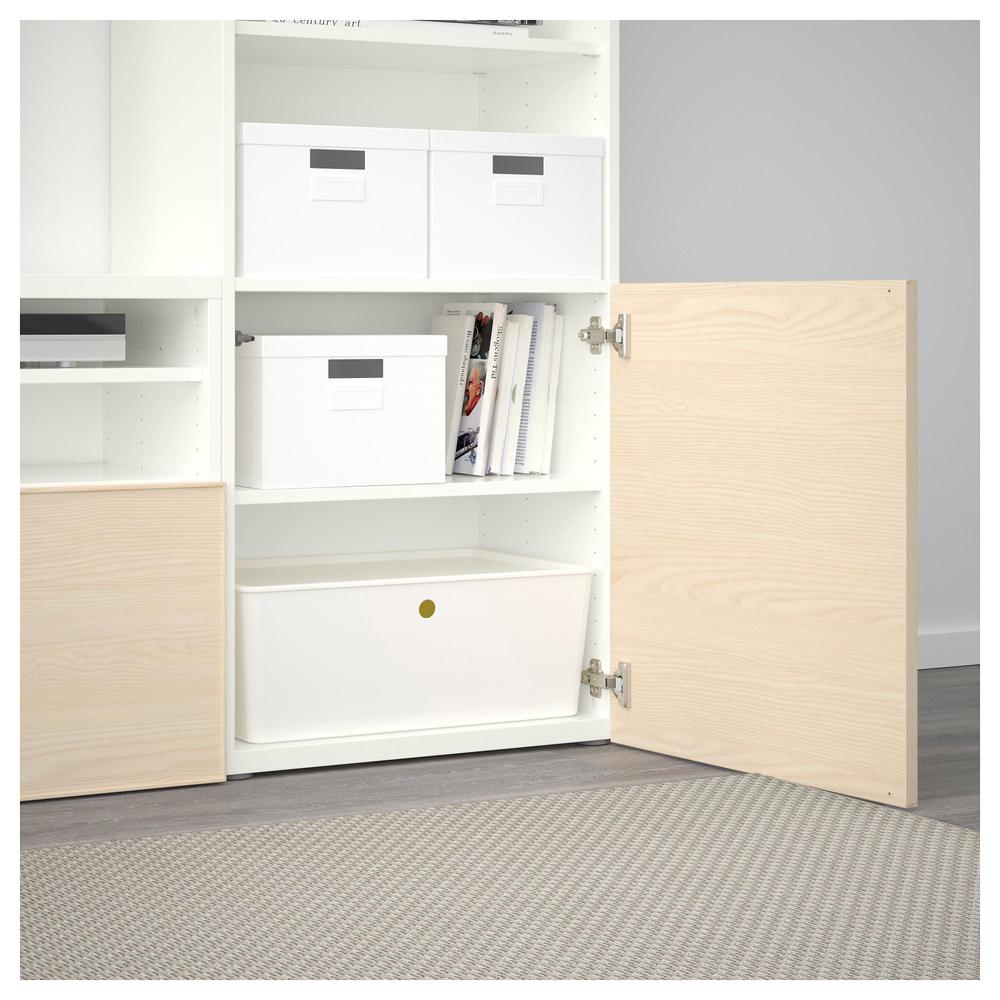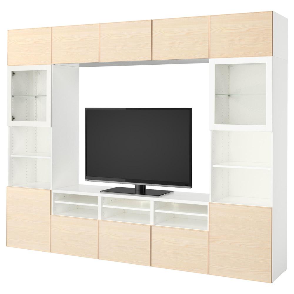 БЕСТО Шкаф для ТВ, комбин/стеклян дверцы - белый/Инвикен ясеневый шпон, направляющие ящика, плавно закр
