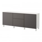 БЕСТО Комбинация для хранения с ящиками - белый/Грундсвикен темно-серый, направляющие ящика, плавно закр