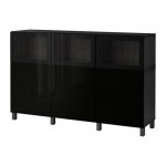 БЕСТО Комбинация для хранения с дверцами - черно-коричневый Сельсвикен/Глассвик глянцевый/черный прозрачное стекло