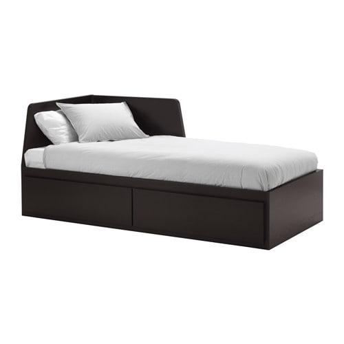 ФЛЕККЕ Кушетка с 2 матрасами/2 ящиками - черно-коричневый/Малфорс жесткий