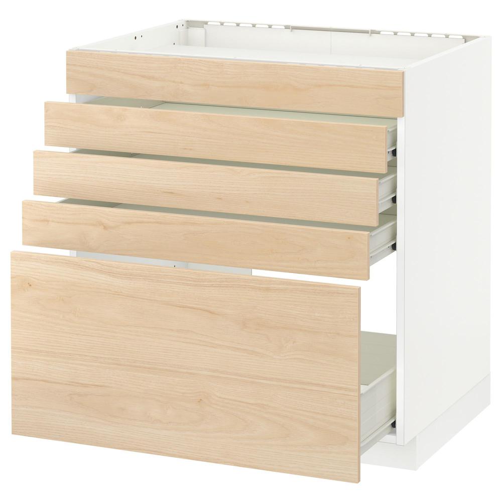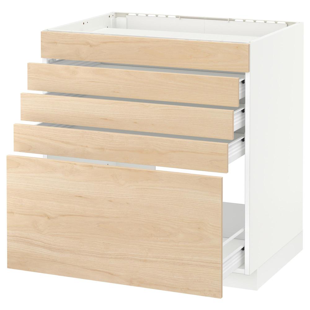МЕТОД / ФОРВАРА Напольн шк д/вар панели/5фасад/4ящ - белый, Аскерсунд под светлый ясень, 80x60 см