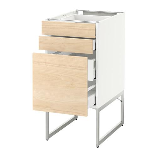 МЕТОД / МАКСИМЕРА Напольн шкаф 3фронт пнл/2низ/2ср ящ - белый, Аскерсунд под светлый ясень, 40x60x60 см