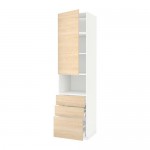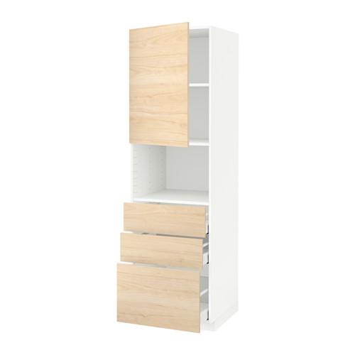 МЕТОД / МАКСИМЕРА Высокий шкаф д/СВЧ+дверца/3 ящика - белый, Аскерсунд под светлый ясень, 60x60x200 см