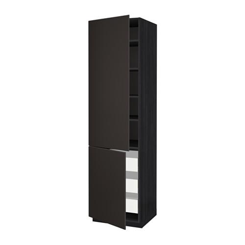 МЕТОД / МАКСИМЕРА Высокий шкаф+полки/3 ящика/2 дверцы - под дерево черный, Кунгсбакка антрацит, 60x60x220 см