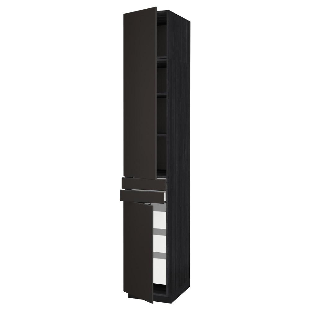 МЕТОД / МАКСИМЕРА Высок шкаф+полки/5ящк/2дверцы/2фрнт - под дерево черный, Кунгсбакка антрацит, 40x60x240 см