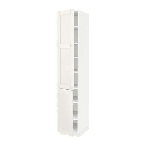 МЕТОД Высокий шкаф с полками/2 дверцы - белый, Сэведаль белый, 40x60x220 см