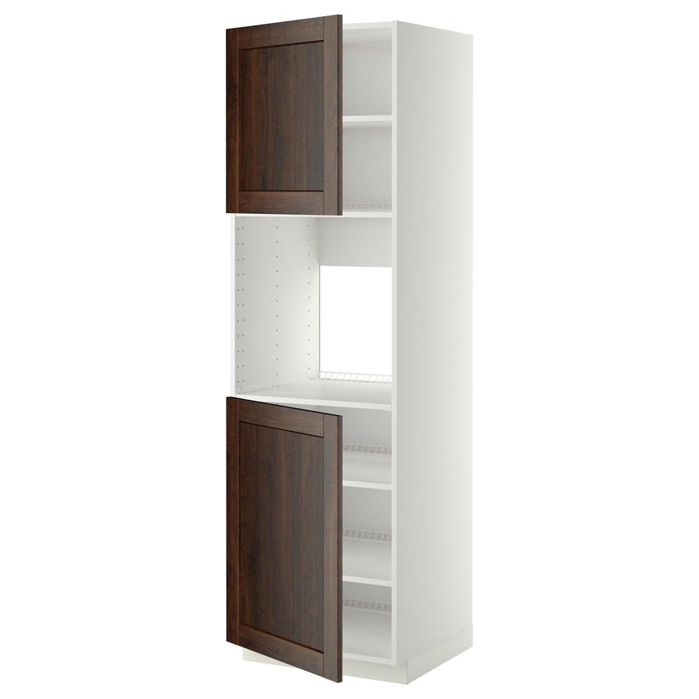 МЕТОД Высок шкаф д/духовки/2дверцы/полки - белый, Эдсерум под дерево коричневый, 60x60x200 см