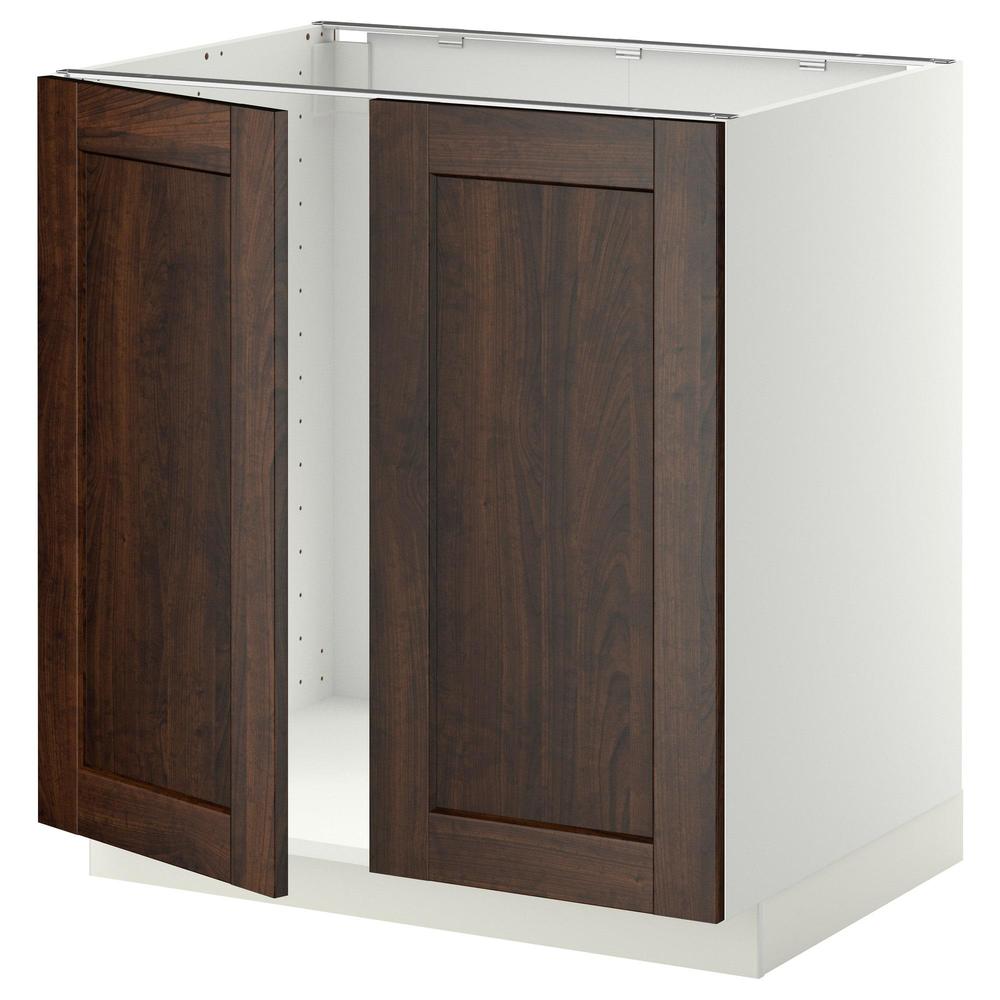 МЕТОД Напольн шкаф д раковины+2 двери - белый, Эдсерум под дерево коричневый, 80x60 см