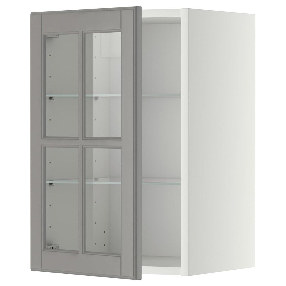 МЕТОД Навесной шкаф с полками/стекл дв - белый, Будбин серый, 40x60 см