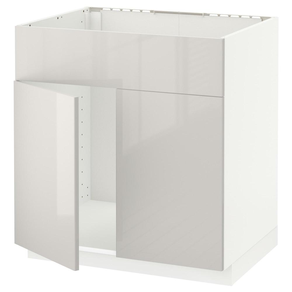 МЕТОД Напольн шкаф п-мойку 2 двр/фрн пнл - белый, Рингульт глянцевый светло-серый