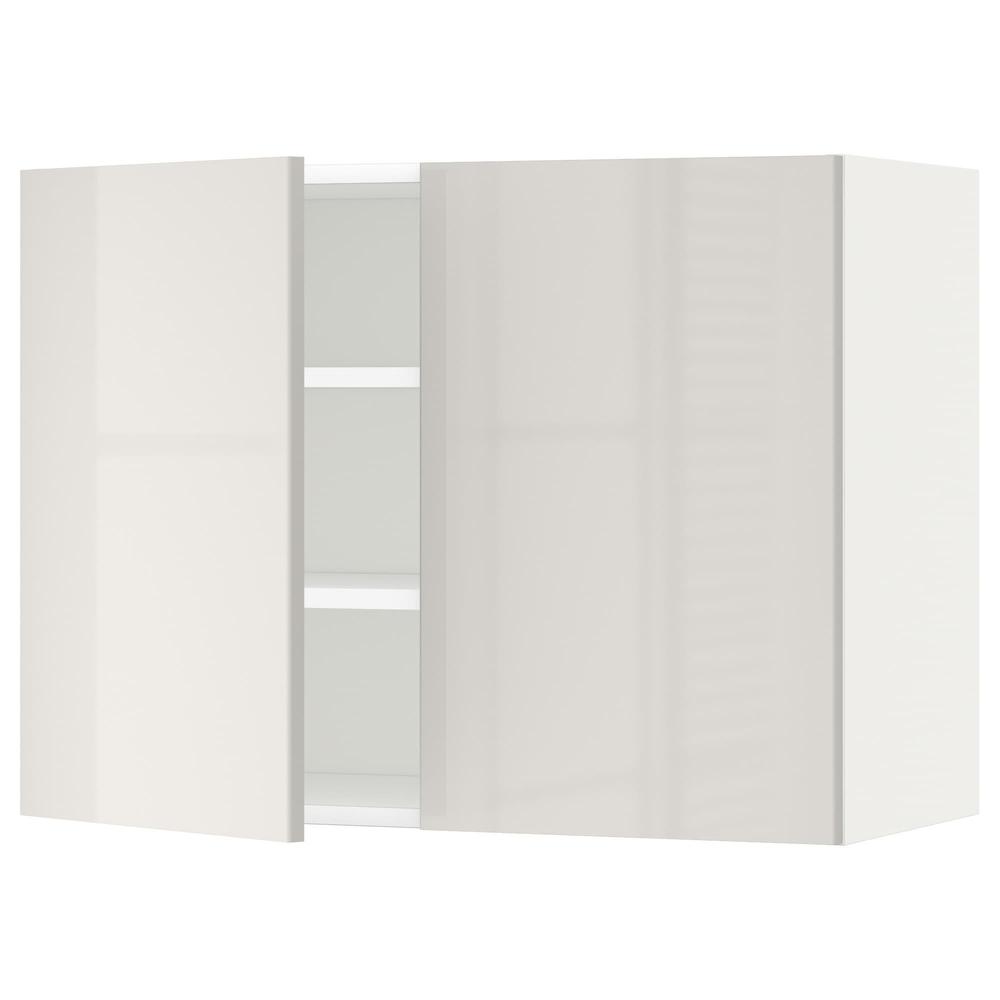 МЕТОД Навесной шкаф с полками/2дверцы - белый, Рингульт глянцевый светло-серый, 80x60 см