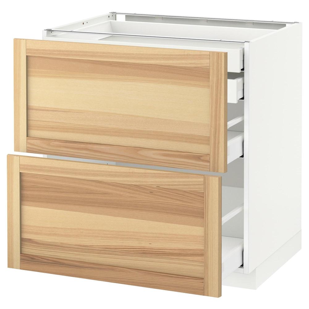 МЕТОД / МАКСИМЕРА Напл шк 2 фрнт/2низ/1срд/1 выс ящ - белый, Торхэмн естественный ясень, 80x60 см