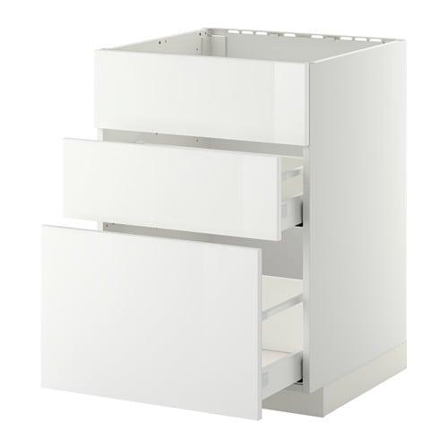 МЕТОД / МАКСИМЕРА Напольн шк п-мойку+3фрнт пнл/2ящ - белый, Рингульт глянцевый белый, 60x60 см