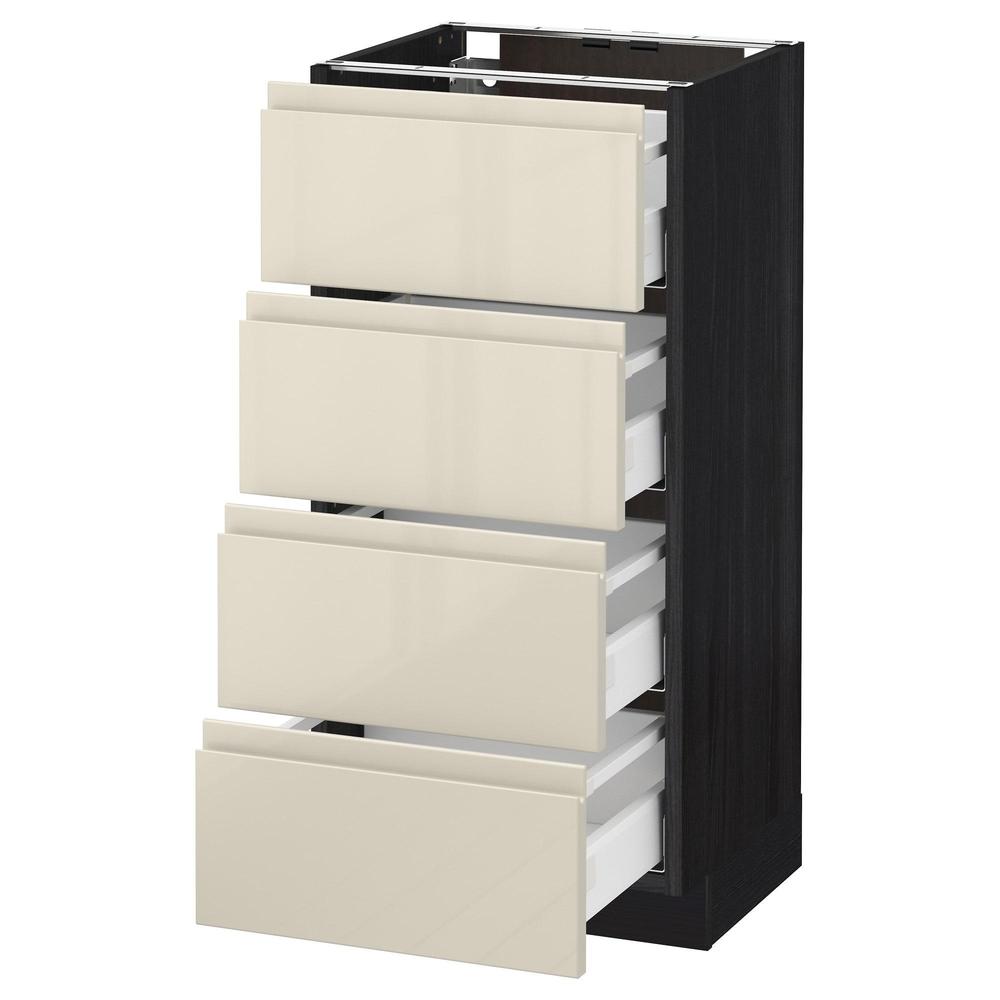 МЕТОД / МАКСИМЕРА Напольн шкаф 4 фронт панели/4 ящика - под дерево черный, Воксторп глянцевый светло-бежевый, 40x37 см