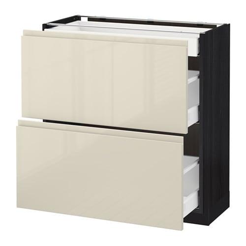 МЕТОД / МАКСИМЕРА Напольный шкаф/2фасада/3ящика - под дерево черный, Воксторп глянцевый светло-бежевый, 80x37 см