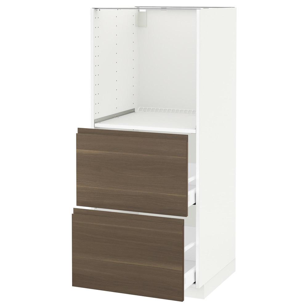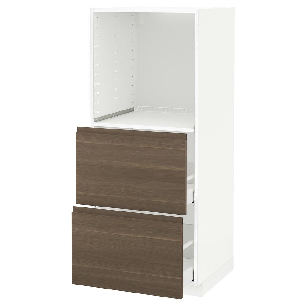 МЕТОД / МАКСИМЕРА Высокий шкаф с 2 ящиками д/духовки - белый, Воксторп под грецкий орех