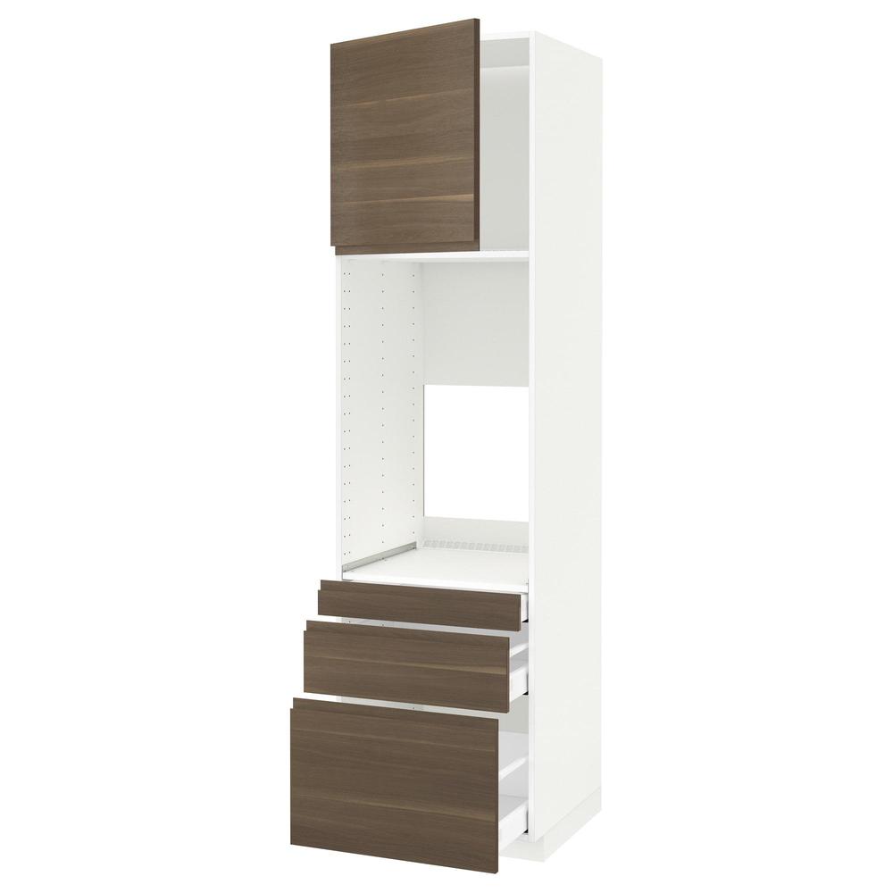 МЕТОД / МАКСИМЕРА Выс шкаф д/двойн духовки/3ящ/дверца - белый, Воксторп под грецкий орех, 60x60x220 см