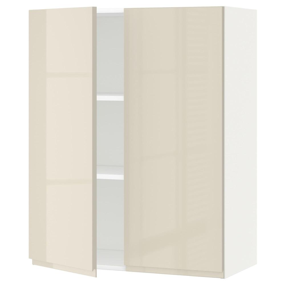 МЕТОД Навесной шкаф с полками/2дверцы - белый, Воксторп глянцевый светло-бежевый, 80x100 см