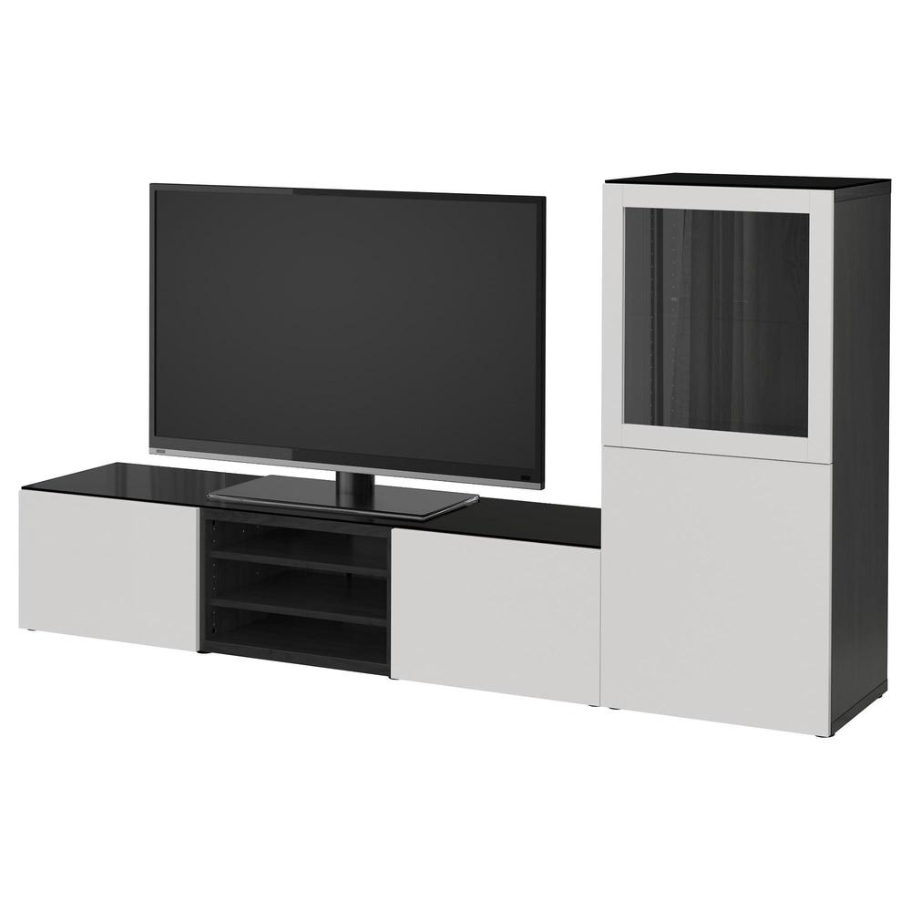 БЕСТО Шкаф для ТВ, комбин/стеклян дверцы - черно-коричневый/Лаппвикен светло-серый прозрачное стекло, направляющие ящика, плавно закр 0.0/5 оценка (0 голосов)