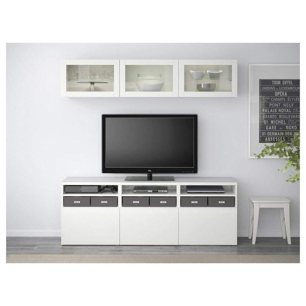 БЕСТО Шкаф для ТВ, комбин/стеклян дверцы - Лаппвикен/Синдвик белый прозрачное стекло, направляющие ящика,нажимные