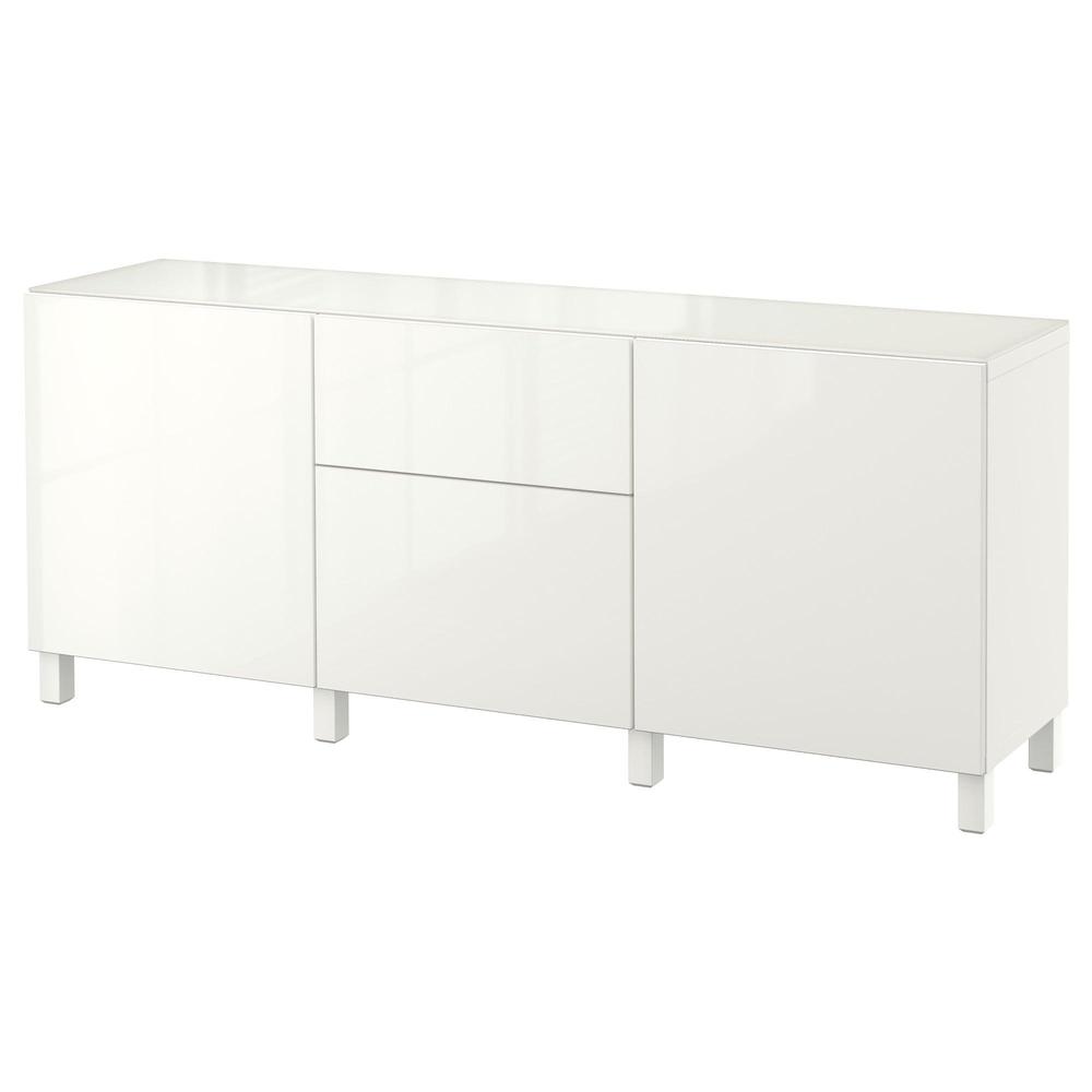 БЕСТО Комб для хран с дверц/ящ - белый/Сельсвикен глянцевый/белый, направляющие ящика,нажимные
