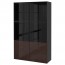 БЕСТО Комбинация д/хранения+стекл дверц - черно-коричневый/Сельсвикен глянцевый/коричневый дымчат стекло, направляющие ящика, плавно закр