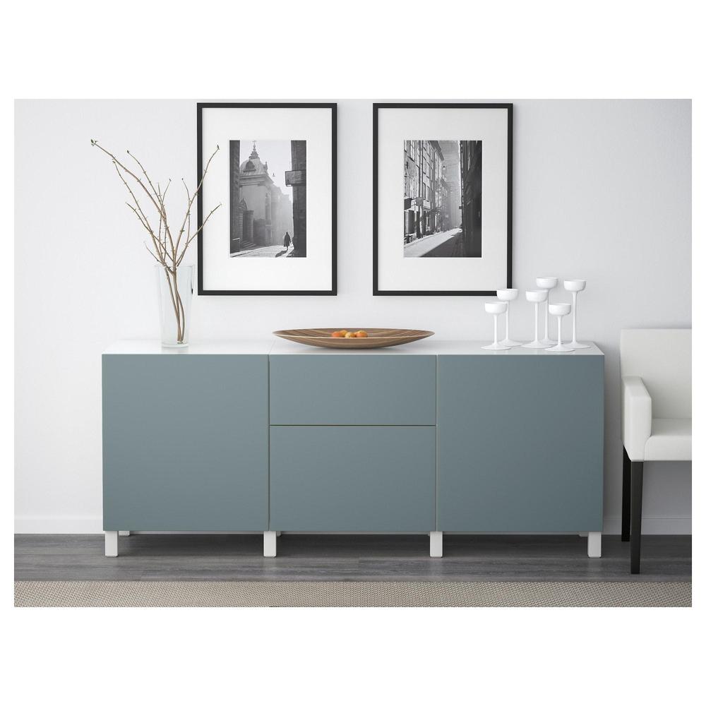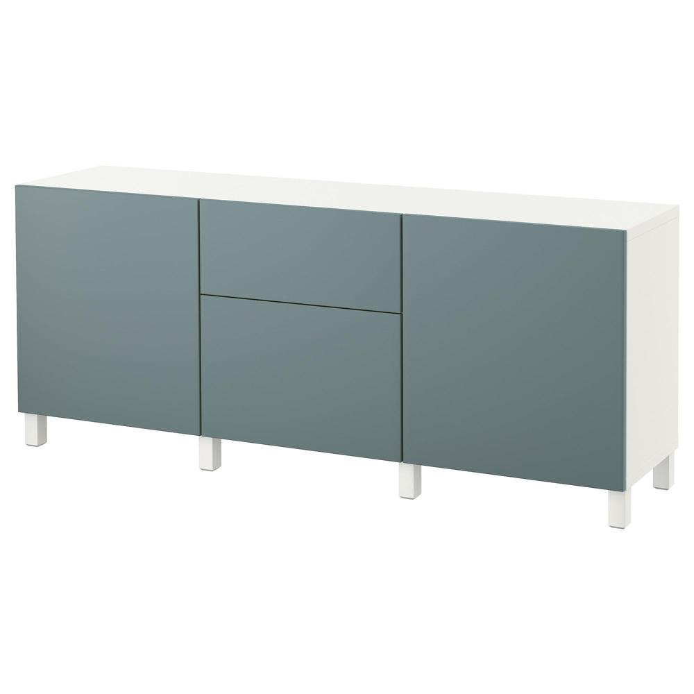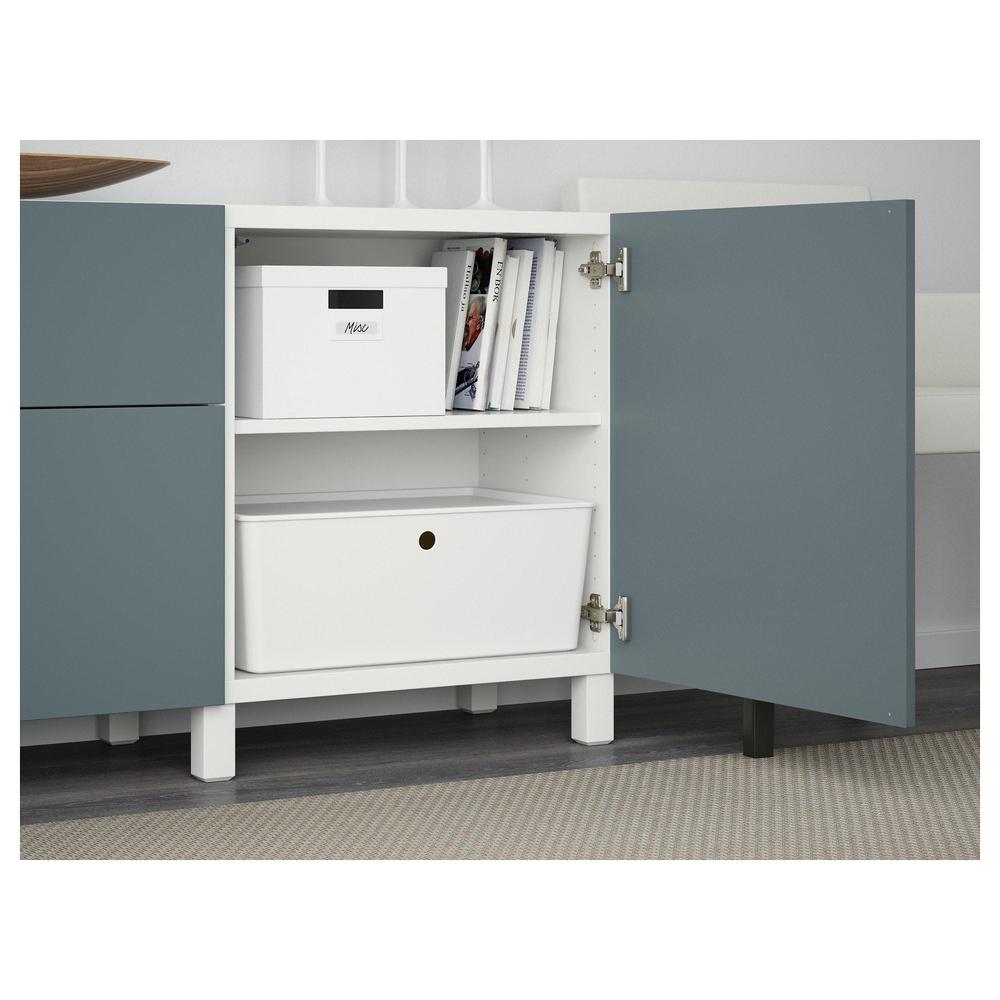 БЕСТО Комбинация для хранения с ящиками - белый/Вальвикен серо-бирюзовый, направляющие ящика,нажимные