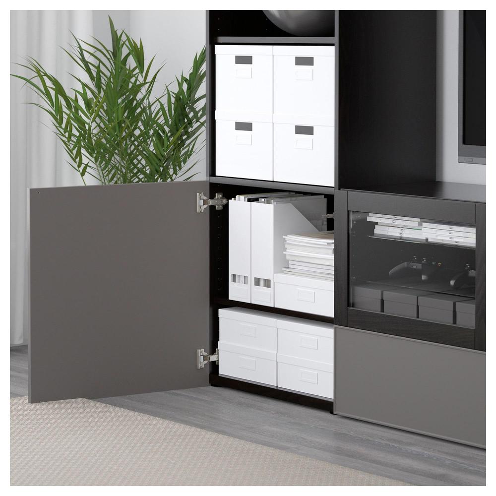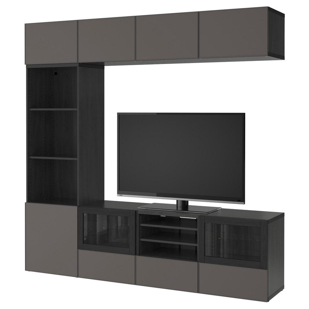 БЕСТО Шкаф для ТВ, комбин/стеклян дверцы - черно-коричневый Грундсвикен/темно-серый прозрачное стекло, направляющие ящика,нажимные