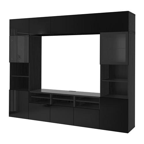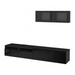 БЕСТО Шкаф для ТВ, комбин/стеклян дверцы - черно-коричневый/Сельсвикен глянцевый/черный прозрачное стекло, направляющие ящика, плавно закр