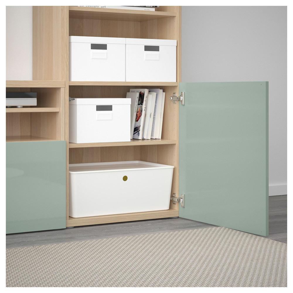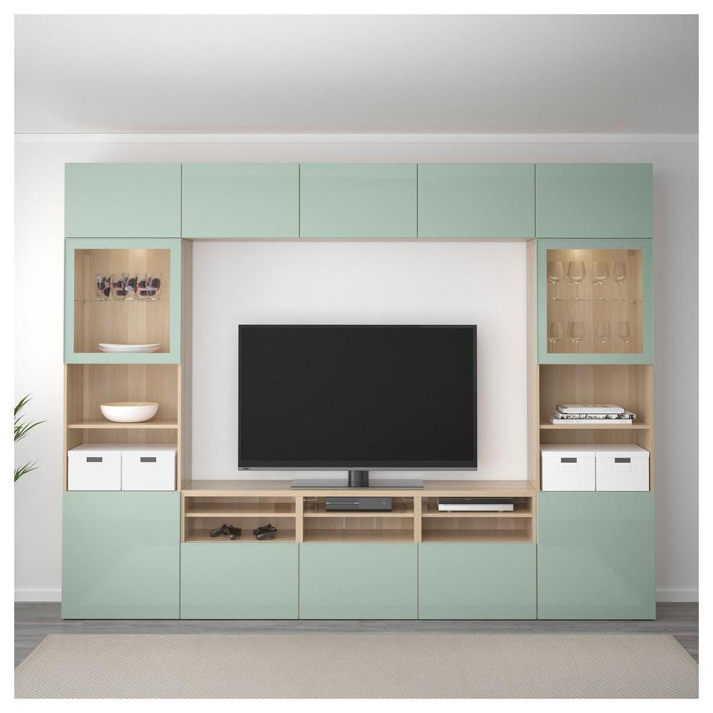БЕСТО Шкаф для ТВ, комбин/стеклян дверцы - под беленый дуб Сельсвикен/глянцевый/серо-зеленый светлый прозрачное стекло, направляющие ящика,нажимные 0.0/5 оценка (0 голосов)