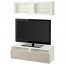 БЕСТО Шкаф для ТВ, комбин/стеклян дверцы - белый/Сельсвикен глянцевый/бежевый прозрачное стекло, направляющие ящика,нажимные