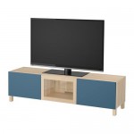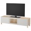 БЕСТО Тумба под ТВ с ящиками и дверцей - под беленый дуб/Лаппвикен светло-серый прозрачное стекло, направляющие ящика, плавно закр