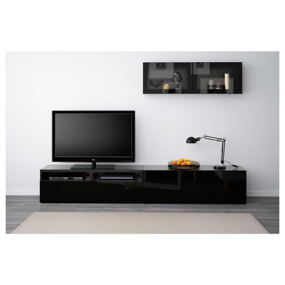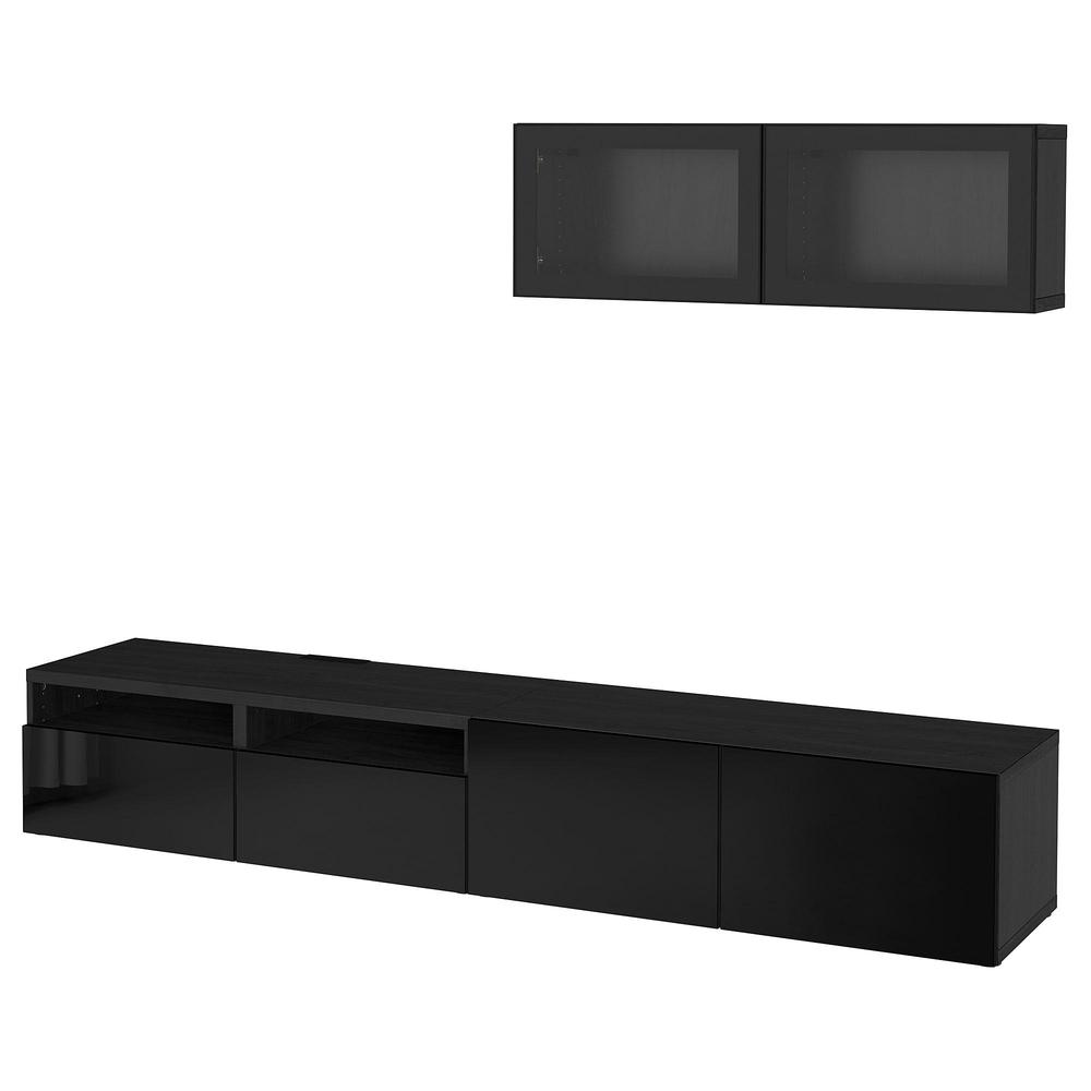 БЕСТО Шкаф для ТВ, комбин/стеклян дверцы - черно-коричневый/Сельсвикен глянцевый/черный прозрачное стекло, направляющие ящика, плавно закр