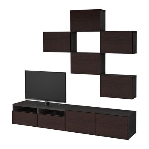 БЕСТО Шкаф для ТВ, комбинация - черно-коричневый/Инвикен черно-коричневый, направляющие ящика,нажимные
