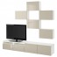 БЕСТО Шкаф для ТВ, комбинация - белый/Сельсвикен глянцевый/бежевый, направляющие ящика,нажимные