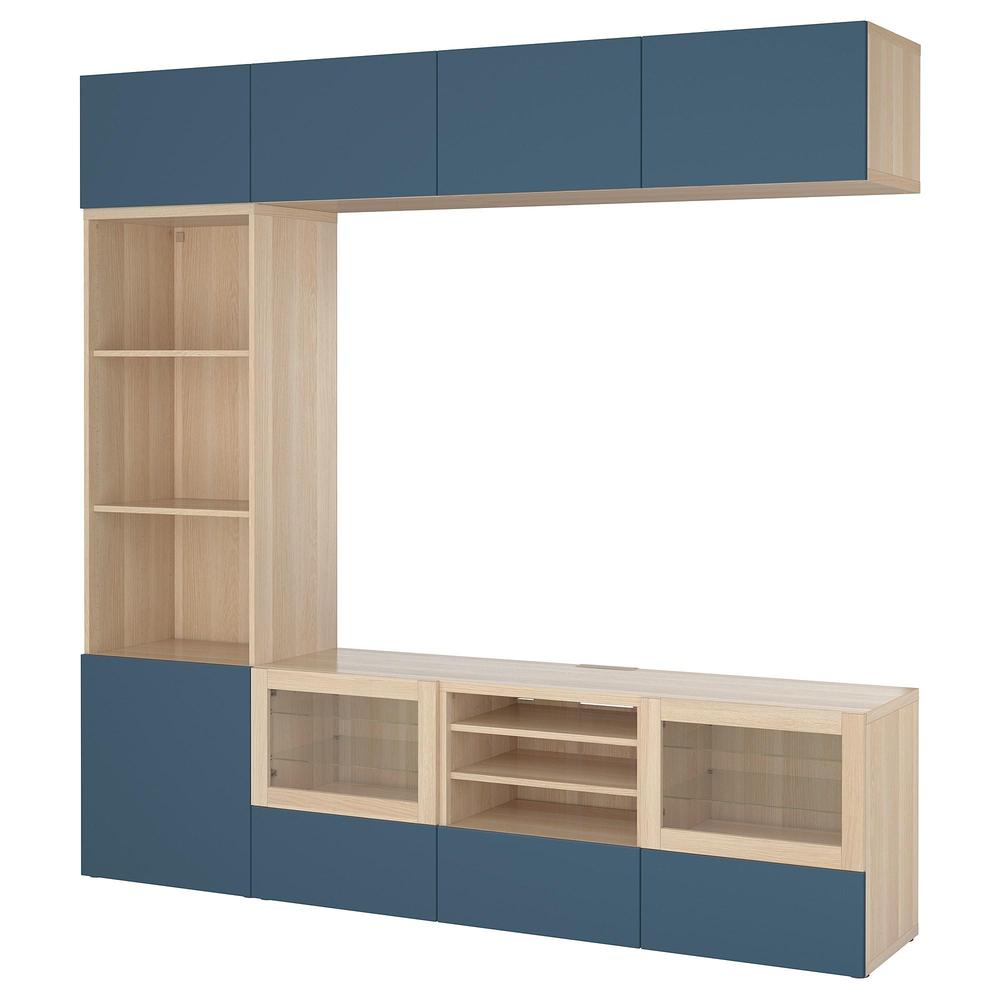БЕСТО Шкаф для ТВ, комбин/стеклян дверцы - под беленый дуб Вальвикен/темно-синий прозрачное стекло, направляющие ящика, плавно закр 0.0/5 оценка (0 голосов)