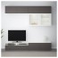 -Настенные шкафчики позволяют эффективно использовать пространство над телевизором.