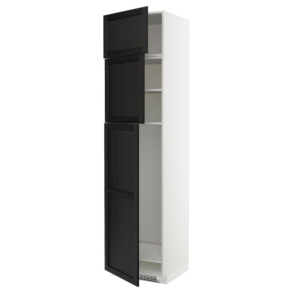 МЕТОД Высокий шкаф д/холодильника/3дверцы - белый, Лерх черная морилка