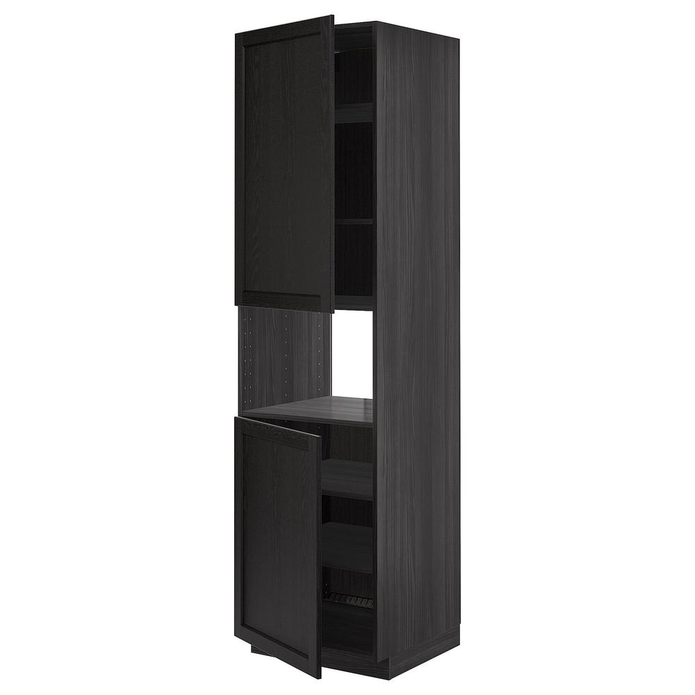 МЕТОД Выс шкаф д/СВЧ/2 дверцы/полки - под дерево черный, Лерх черная морилка, 60x60x220 см